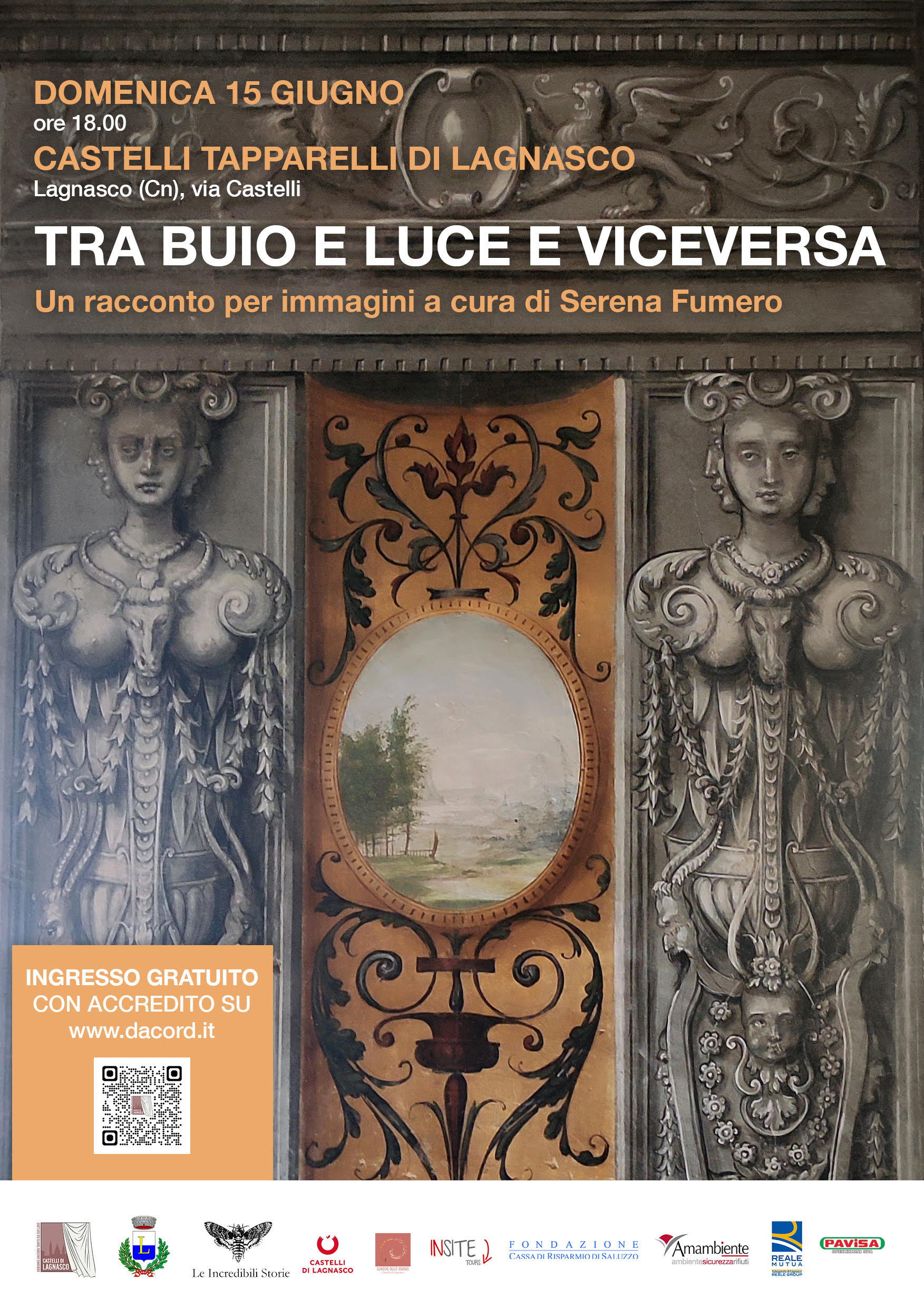 E viceversa Domenica 15 giugno dalle ore 18.00 L’idea per questa narrazione, gravitante intorno agli apparati decorativi dei Castelli Tapparelli di Lagnasco, è una narrazione che conduce, anche fisicamente, dalla